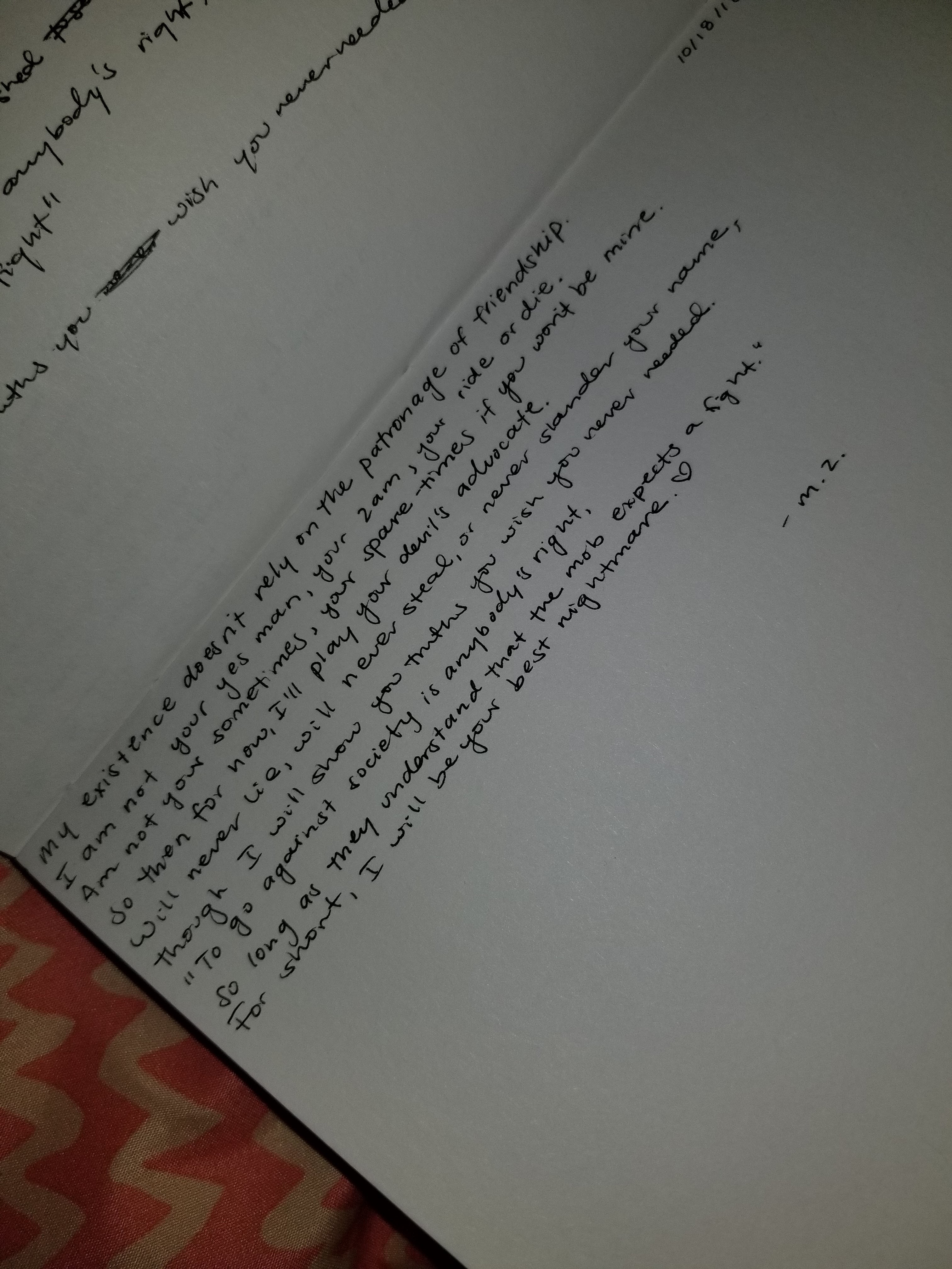 My existence doesn’t rely on the patronage of friendship.